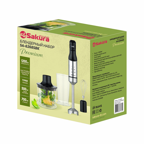 Блендерный набор SAKURA SA-6268SBK Premium 1200Вт, 20 скоростей, DC мотор, стакан, чоппер