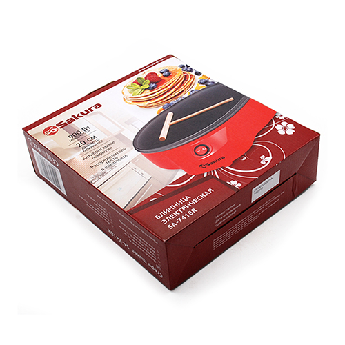 Блинница эл. SAKURA SA-7418R 900Вт, d-20см, 1 блинчик, фиксированная панель, красный