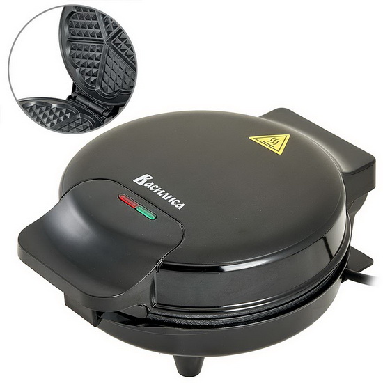 За счет использования двух нагревательных пластин вафельница равномерно пропекает вафли сразу с двух сторон