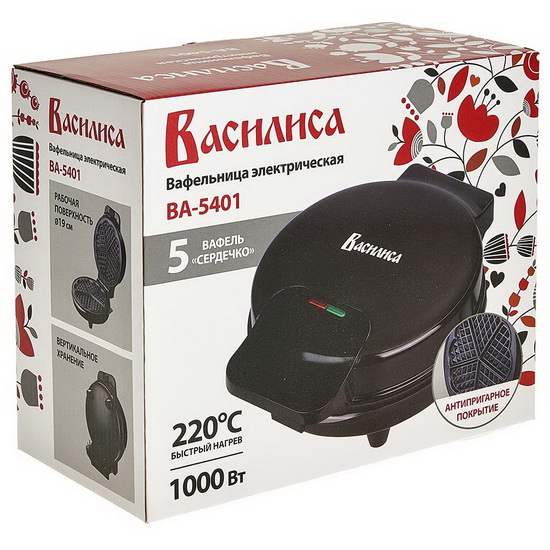 Вафельница эл. ВАСИЛЬСА ВА-5401 1000Вт, 5 вафель, d-19см. ВЕНСКАЯ, антип покрытие, черная (1/10)