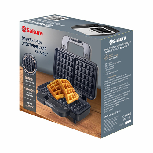 Вафельница эл. SAKURA SA-7425T 1000Вт антипригар покрытие