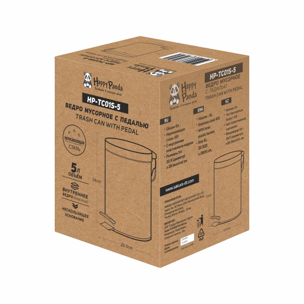 Ведро для мусора Happy Panda HP-TC01S-5 5л, педаль, нерж, внутри пластиковое ведро, d-28см