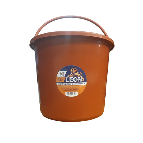 Ведро строительное 12л резинопластик ударопрочное LEON круглое красное (1)