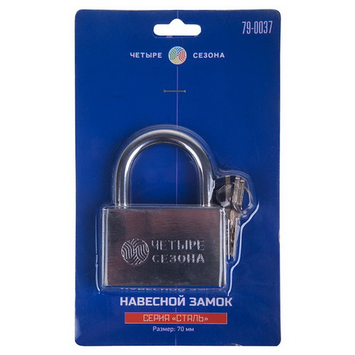Навесной замок ЧЕТЫРЕ СЕЗОНА идеально подходит для защиты вашего имущества от непрошенных гостей. Замок пригодится для запирания гаражных ворот, распределительных щитков, складов и других объектов.
