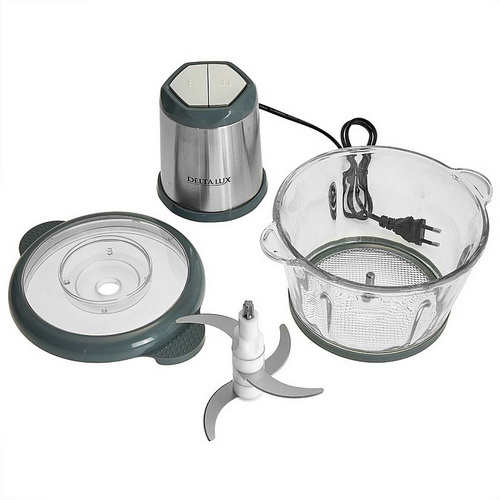 Измельчитель предназначен для измельчения и смешивания различных продуктов, оснащен прочными двойными лезвиями из нержавеющей стали для измельчения мяса, рыбы, яиц, сыра, хлеба, моркови, чеснока, петрушки, овощей, кофе, орехов и т.п.