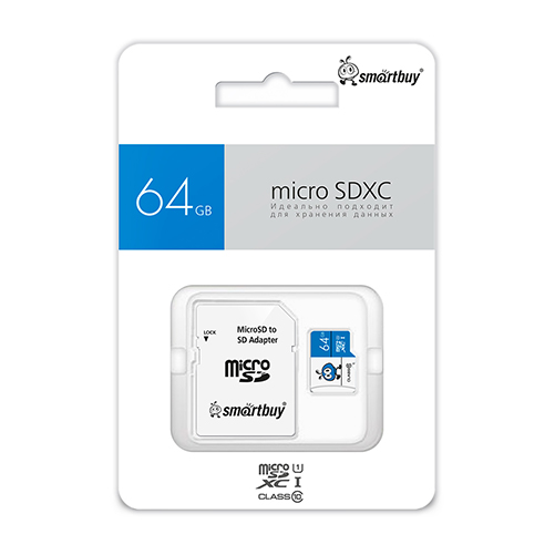 Карта памяти 64GB micro SDXC UHS-I BLUE (с адаптером SD) Smartbuy