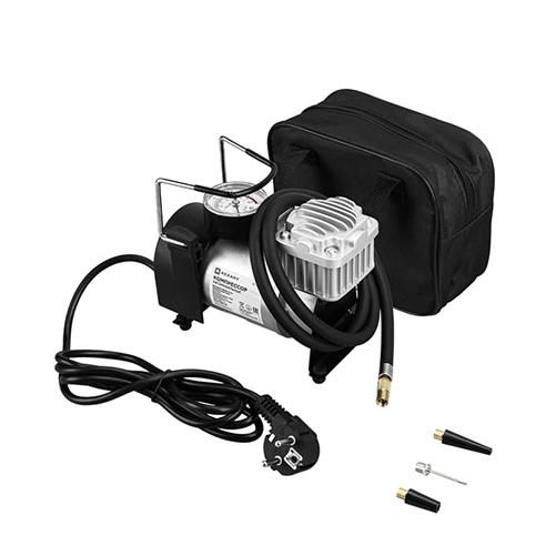 Автомобильный компрессор предназначен для накачивания автомобильных, мотоциклетных и велосипедных шин. Питание от розетки 220 В делает компрессор удобным для использования дома, в гараже или на даче. При производительности 35 литров в минуту (9,4 АТМ) накачка происходит быстро и без лишних усилий. Встроенный манометр позволяет точно контролировать давление, что важно для безопасной и комфортной эксплуатации шин. Использование прочных и износостойких материалов, а также надежных внутренних компонентов обеспечивает стабильную работу компрессора и долгий срок службы даже при регулярной эксплуатации. В комплекте с насосом поставляются три насадки-переходника для работы с различными типами шин и клапанов.