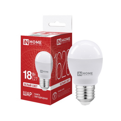 Лампа LED шар 18Вт E27 4000К 220V 1620Лм ШАР-VC IN HOME (10/100)