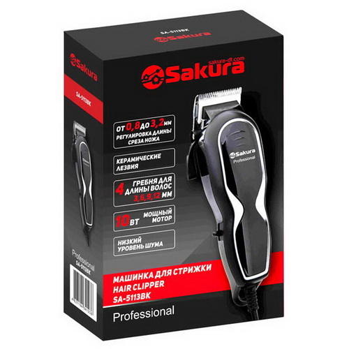 Машинка для стрижки волос сетевая SAKURA SA-5113BK Professiоnal 1-12мм керамич.лезвия
