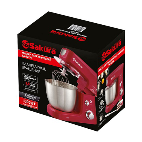 Миксер эл. с чашей SAKURA SA-6327BK планетарный 1000Вт,6 скоростей, чаша 3,5л