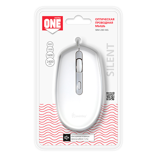 Мышь проводная беззвучная Smartbuy ONE 280-W бело-серая (SBM-280-WG) / 40