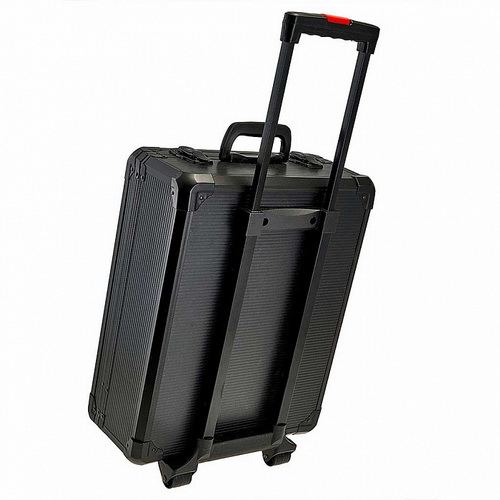 Удобный алюминиевый кейс на колесиках и с выдвижной ручкой
