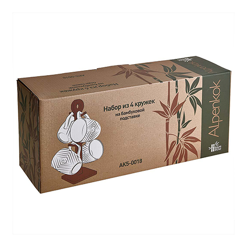 Набор кружек ALPENKOK AK5-0018 4 предмета 360мл, на бамбуковой подставке (1/6)