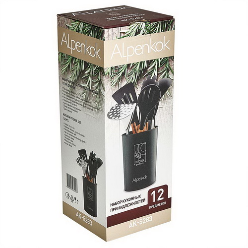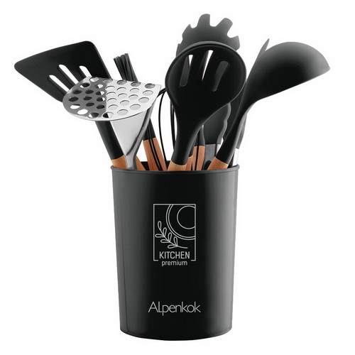Набор кухонных принадлежностей на подставке ALPENKOK AK-5283 12пр. силикон, черный (1/16)