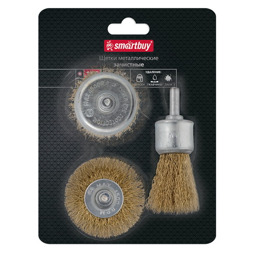 Набор металлические щетки для дрели/шуруповерта, с осью, 3шт Smartbuy Tools