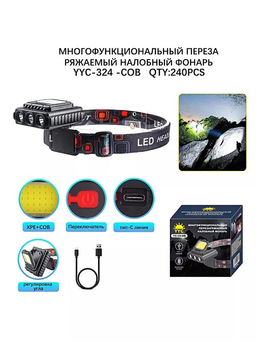 Налобный фонарь модель сконструирован таким образом, что может работать и в помещении, и на открытом воздухе. Он водонепроницаем, поэтому его можно использовать и в сложных погодных условиях. Фонарь оснащен несколькими светодиодами, которые работают в различном сочетании друг с другом: 1 центральный, 2 боковых вместе, 3 вместе, 3 вместе моргают, 1 верхний. Удобная регулировка угла наклона COB-площадки и подвижного корпуса с XRE-светодиодами, поможет подобрать нужное положение освещения в каждой конкретной задаче. Фонарь питается от встроенного перезаряжаемого аккумулятора. В комплекте USB-кабель.