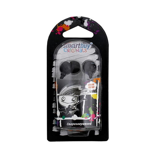 Наушники внутриканальные стерео SmartBuy COLOR TREND, провод 1.2м, черные (1/40/320)