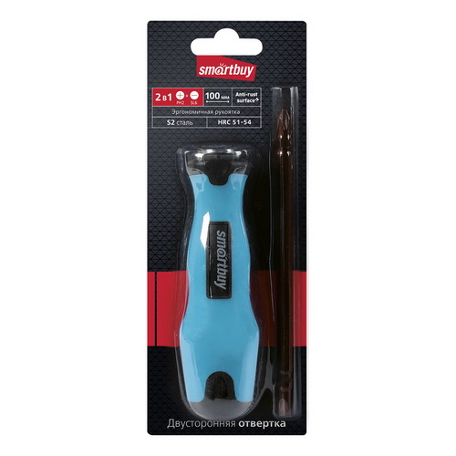 Отвертка двусторонняя PH2, SL6 100мм, с переставной битой, эргон. рукоятка, S2, Smartbuy tools