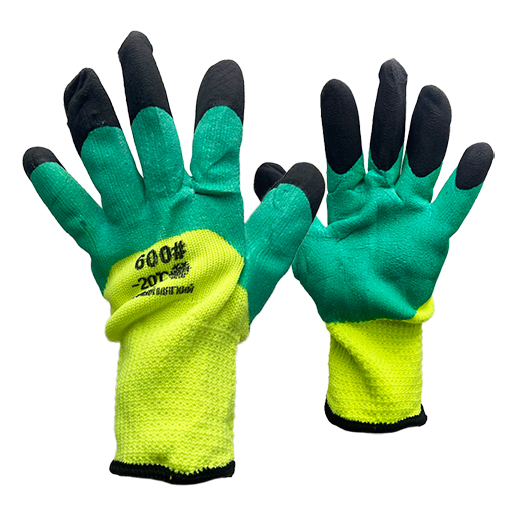 Перчатки вспененные зимние -20°C салатовые с черным пальцем, полный облив 147гр. (10/480)