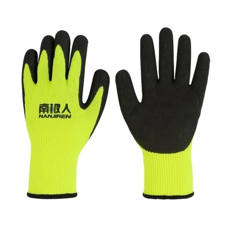 Перчатки утепленные акриловые салатовые с черным вспененным латексом NAN JI REN (10/480)