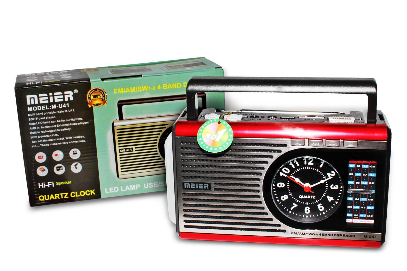 Приемник MEIER M-U41/40 AM/FM/SW USB,SD,AUX,фонарь,часы. Питание:аккум+2*R20+220V (1/30)