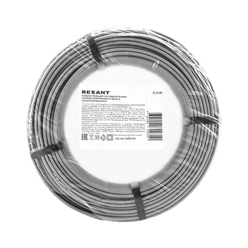 Саморегулируемый (греющий) кабель SRL16-2, неэкранированный, 16Вт/м, 0,9мм2 бухта 50м REXANT
