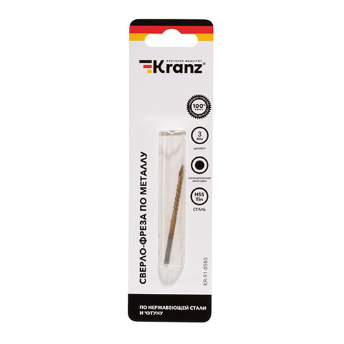 Сверло-фреза по металлу 3мм HSS ТИТАН, цилиндрический хвостовик KRANZ
