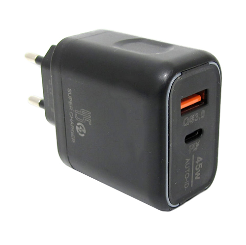Сетевое зарядное устройство 5V 3A / 9V 2,4A / 12V 1,5A 1USB+PD 45W AR-PD33 черный 3,0 быстрая зарядка