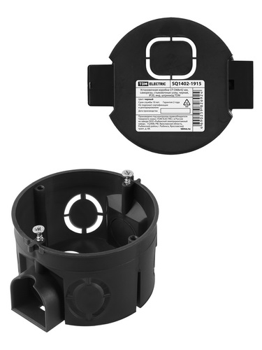 Установочная коробка СП D68х42 мм, саморезы, стыковочные узлы, черная, IP20, инд. штрихкод TDM