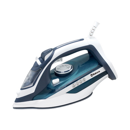 Утюг SAKURA SA-3071CBL 2600Вт, керамическая подошва, самоочистка, анти-капля, белый/синий