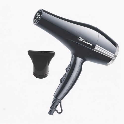 Фен SAKURA SA-4046BK 1600Вт 3темп.режима 2 скор. холод.сушка, насадка-концентратор, рный/серебро