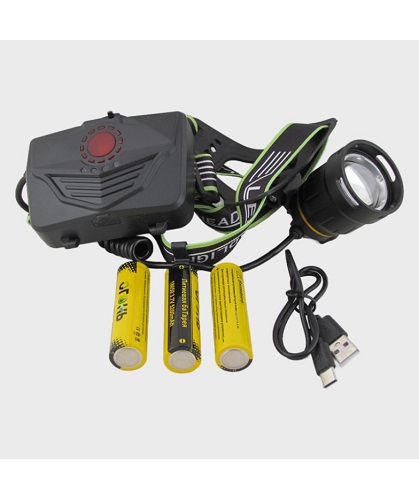 Фонарь налобный аккум LED HT-183-3-TG 1 ярк., 3 акк.18650, шнур TYPE-C, вых.USB, с индикатором, zoom
