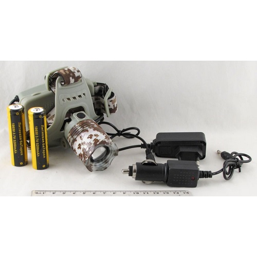 Фонарь налобный аккум LED HT-736 2 ярк.+ 2акк.+ЗУ, 3реж. син.+ бел., трофи, zoom