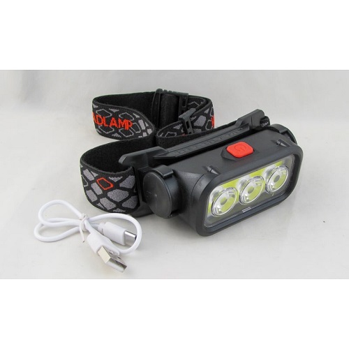 Фонарь налобный аккум LED RE-5009 1 больш., 3 линзы, мигалка красн,, шнур TYPE-C