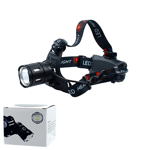 Фонарь налобный аккум LED RE-8090-P70 сталь, мощный 3000м, аккум 2*18650, зум (1/10)