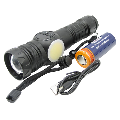 Фонарь ручной аккум LED АК-2305-PM30-TG 1 LED + 1 COB, мигалка красная, шнур TYPE-C, zoom маг