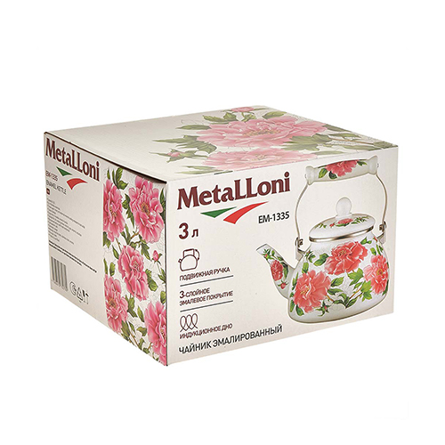 Чайник для плит 3л эмалированный, с керамической ручкой ПИОНЫ EM-1335 (1/8)