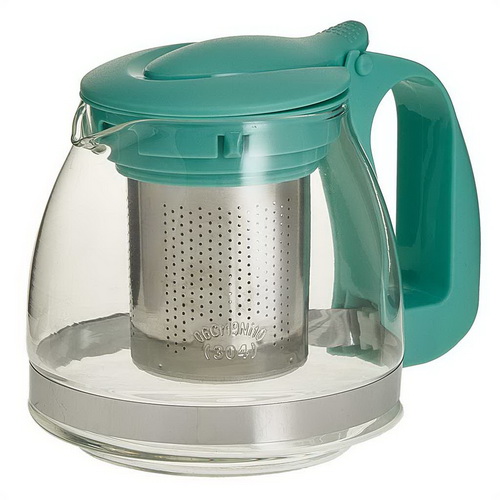 Чайник заварочный ALPENKOK AK-5530 700мл, с фильтром. стекло/пластик бирюзовый (1/12)