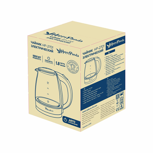 Чайник эл. HappyPanda HP-2701BK 1,8л. 1500-1800Вт, стекло