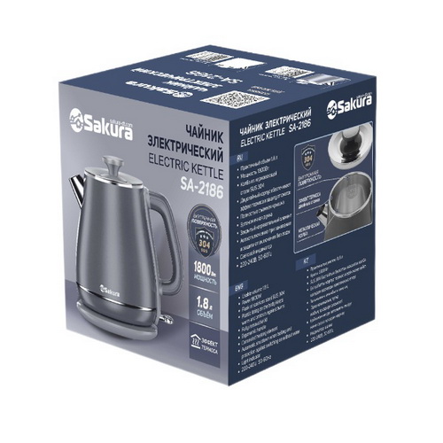 Чайник эл. SAKURA SA-2186BK 1500/1800Вт, двухслойный корпус, 1,8л, эффект термоса, черный