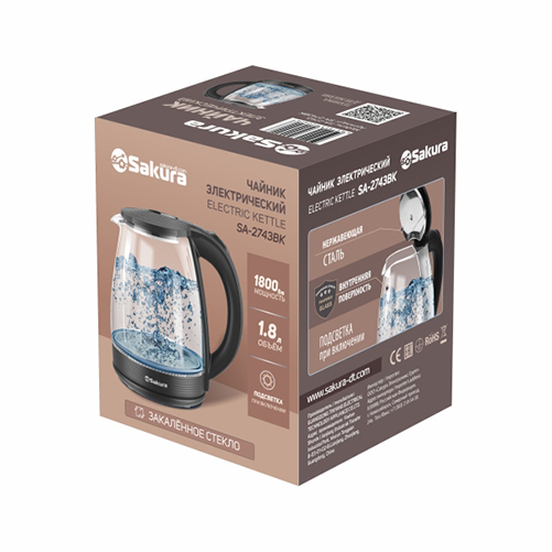 Чайник эл. SAKURA SA-2743BK 1,8л 1800Вт стекло, черный