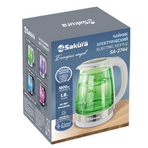 Чайник эл. SAKURA SA-2744GR 1,8л, 1500/1800Вт, двойная стенка, пластик/стекло