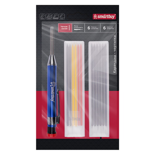 Чертилка/карандаш (скрайбер), набор ручка и 12 грифелей, 6 черн, 3×2 цветных, Smartbuy Tools