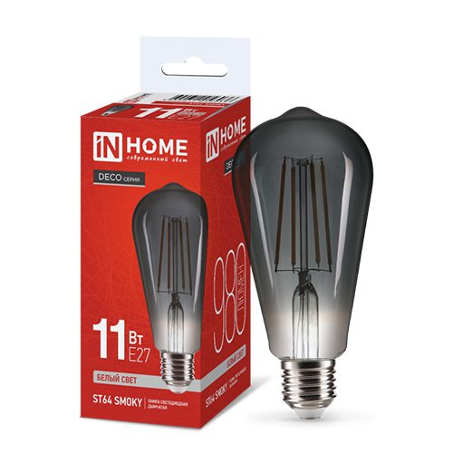 Лампа LED декоративная 11Вт Е27 4000K 220V 980Лм IN HOME дымчатая ST64-deco