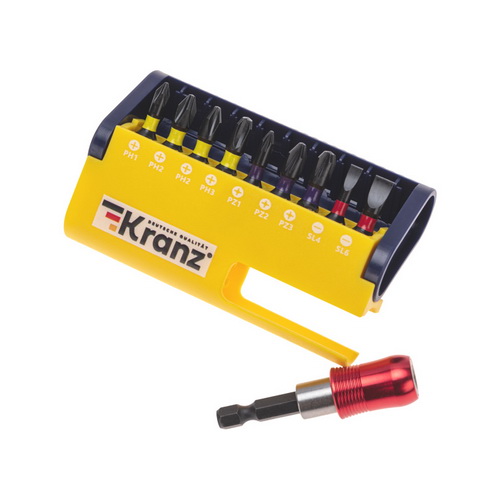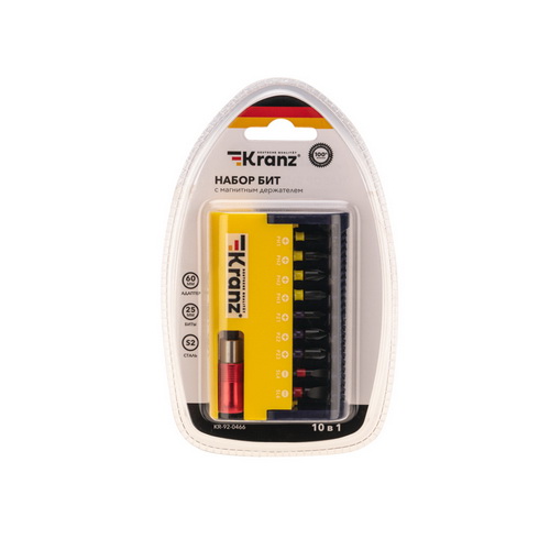 Набор бит с магнитным держателем 10шт, пластиковый кейс KRANZ